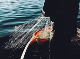 大きな網を用意して、その網を海に投げて、